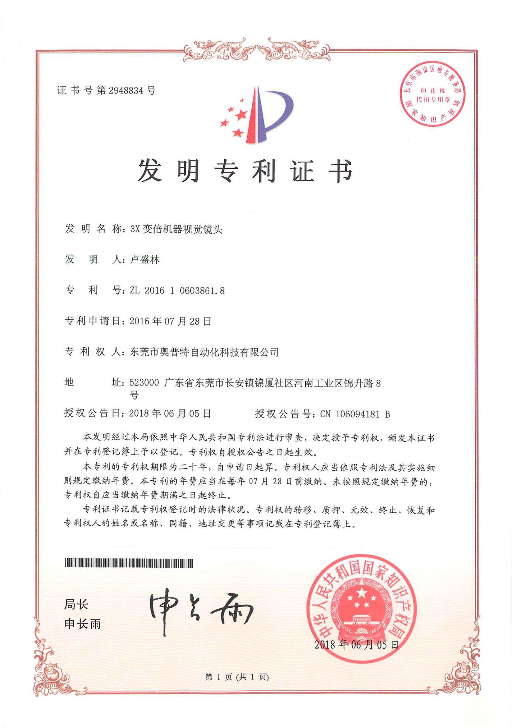 專利證書